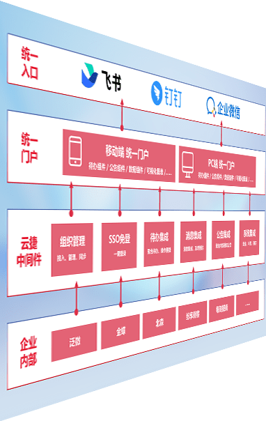 对协作平台提供支持服务,,,支持企业应用与协作平台对接,,,包含组织同步、、消息集成、、待办集成等。。支持目前主流的协作平台:钉钉、、、企微和飞书。。。
